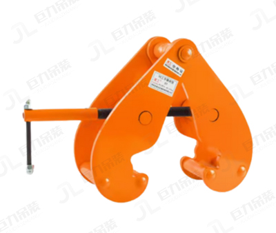 逆时针旋螺纹轴,松开钳口,如图夹入工字钢下缘,顺时针旋螺纹轴,夹紧即可。